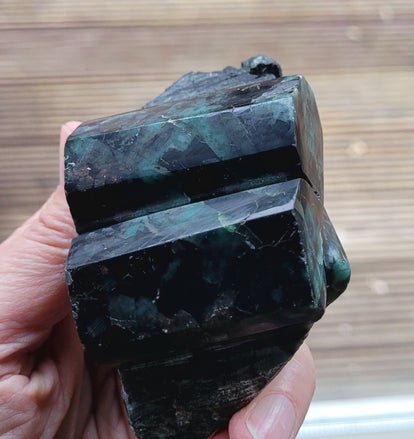 Donker Smaragd in Biotiet, in kristalvorm geslepen, deels ruw.