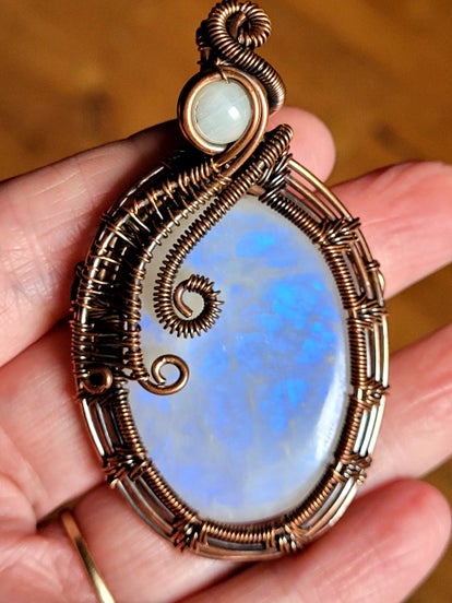 Wire wrap Copperwire with large Rainbow Moonstone and small one.