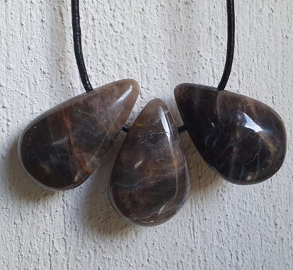 Doorboorde hanger druppelvorm zwarte maansteen 3 cm Moonstone