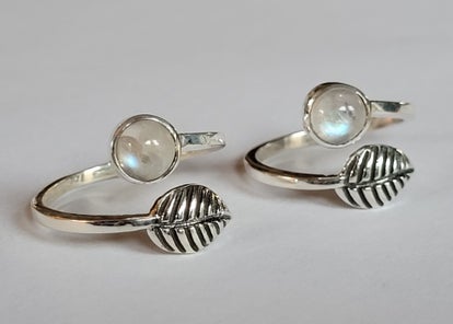 Mooie verstelbare zilver 925 Ring met blaadje en Regenboog Maansteen.