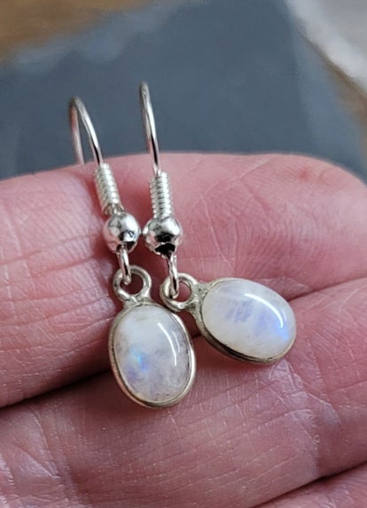 Kleine oorbelletjes Regenboog Maansteen in zilver 925