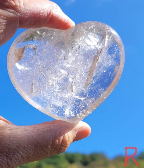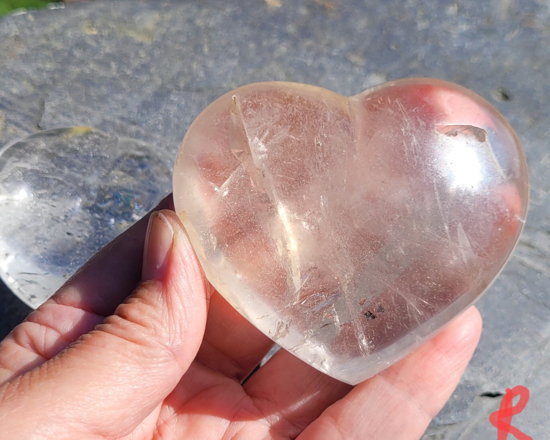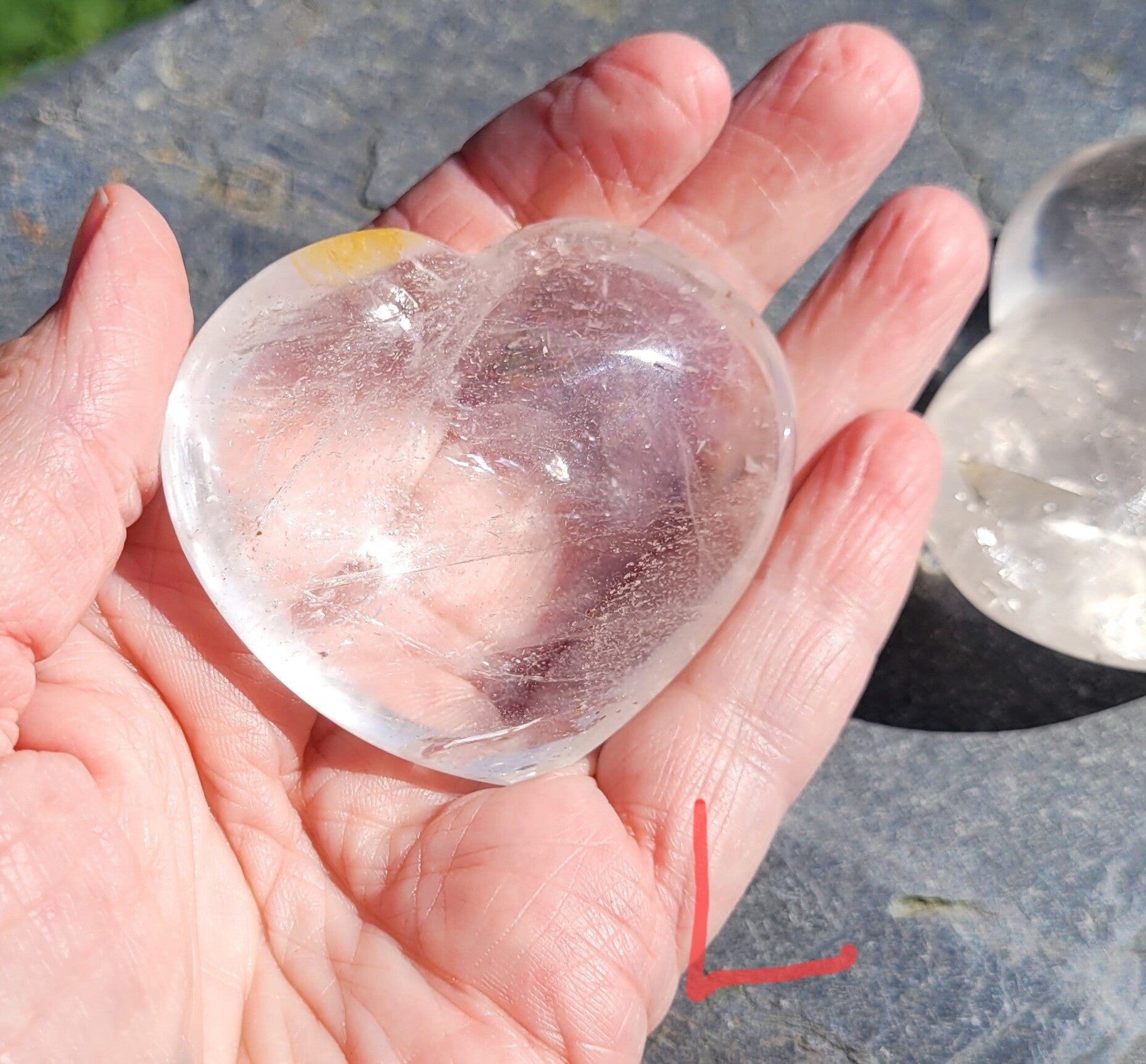 Mooie harten bijna helder Bergkristal, links heeft klein insluitsel limoniet.