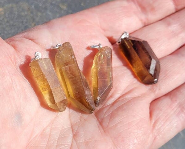 Ruw Citrine Crystals, with metal bail