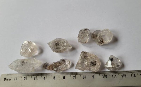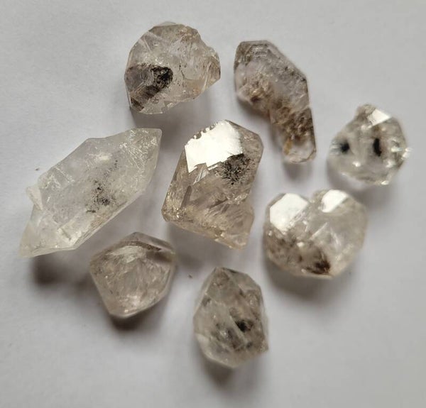 8 pieces 'Herkimer' Crystals, Diamond Quartz double terminated from Pakistan with black inclusions.