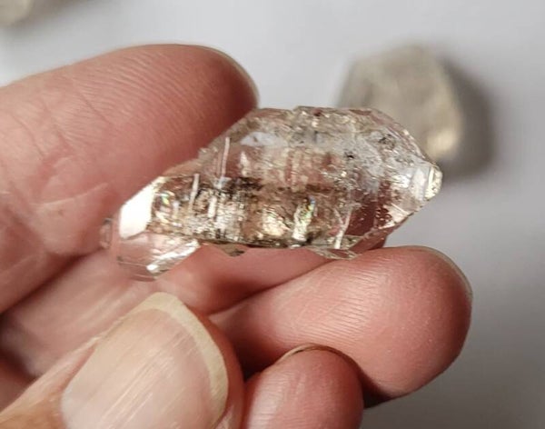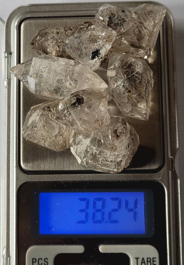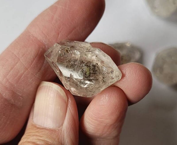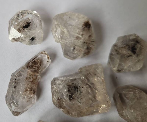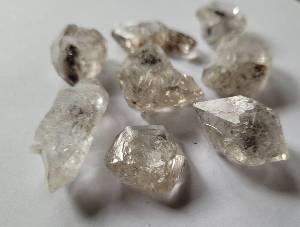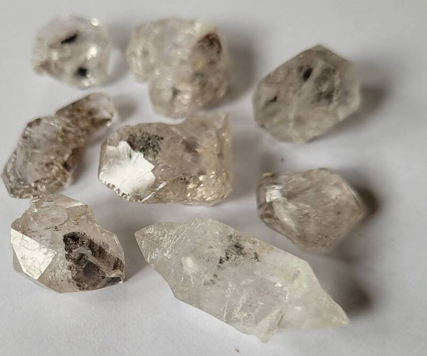 8 st. ruwe 'Herkimers´ Diamond Quartz with inclusions. 2 tm 3,5 cm 38 gr.
