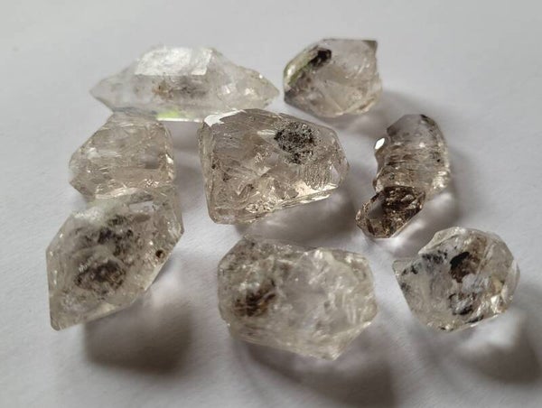 8 Stück Roh 'Herkimer' Diamond quartz kristalle, dippelender. Mit Schwarze bitumen inclusionen.