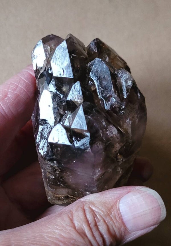Very nice Smokey Amethyst Crystal from Kwa Zulu Natal, South Africa. With light to see the colors. Also Elestialquartz