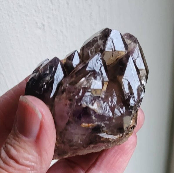 Sehr schön kristal aus KwaZulu Natal, Südafrika. Mit Rauchquartz und Amethyst. Taschenlampe für transparenz. Auch elestialquarz.