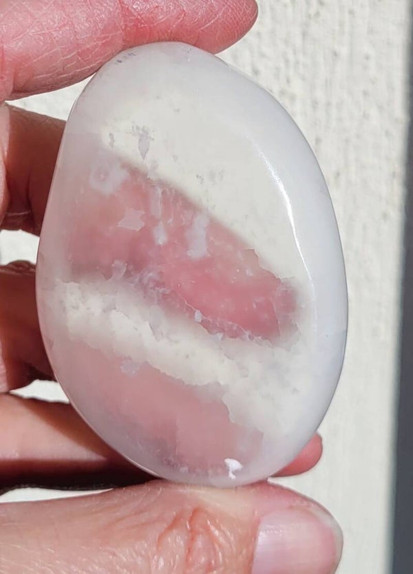 Mooie gepoliistte Seleniet/ satijnspaat stenen met doorkijkje, zo goed als helder. Ook wel TV stone genoemd. Hele zachte steen, als fluweel