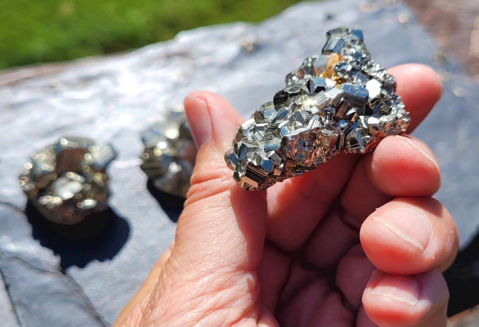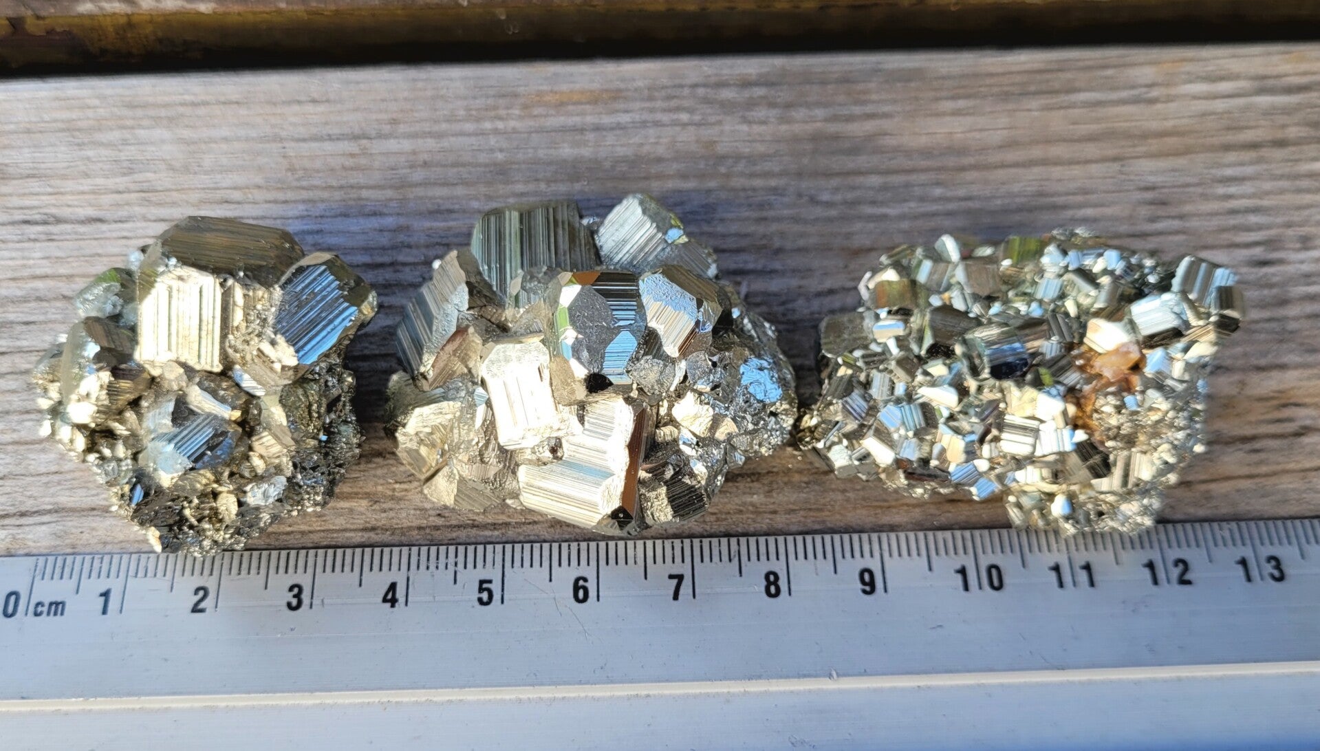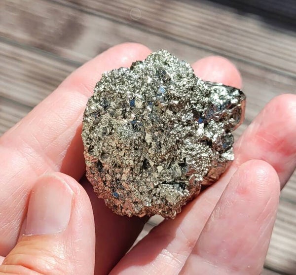 rough pieces of Pyrite with blockcrystals. Bottomside is flat.