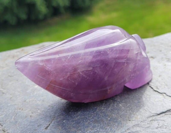 Mooie geslepen lange schedel van Amethistkwarts, een zg. Traveller skull.