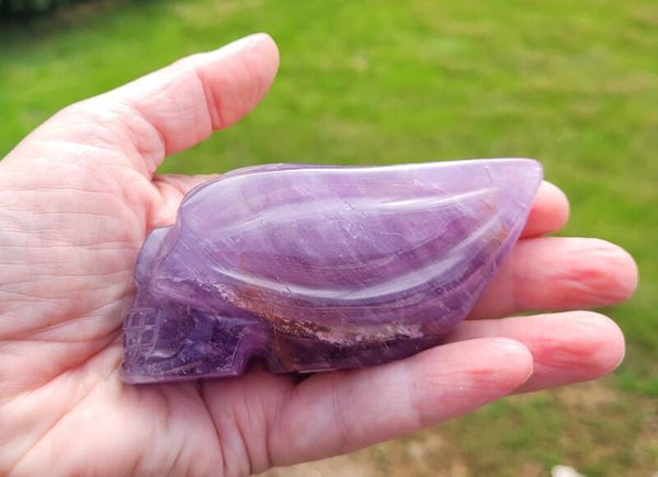 Traveller Skull Amethist 9,5 cm 223 gr. Amethyst Traveller Schädel, Traveller skull Amethyst.