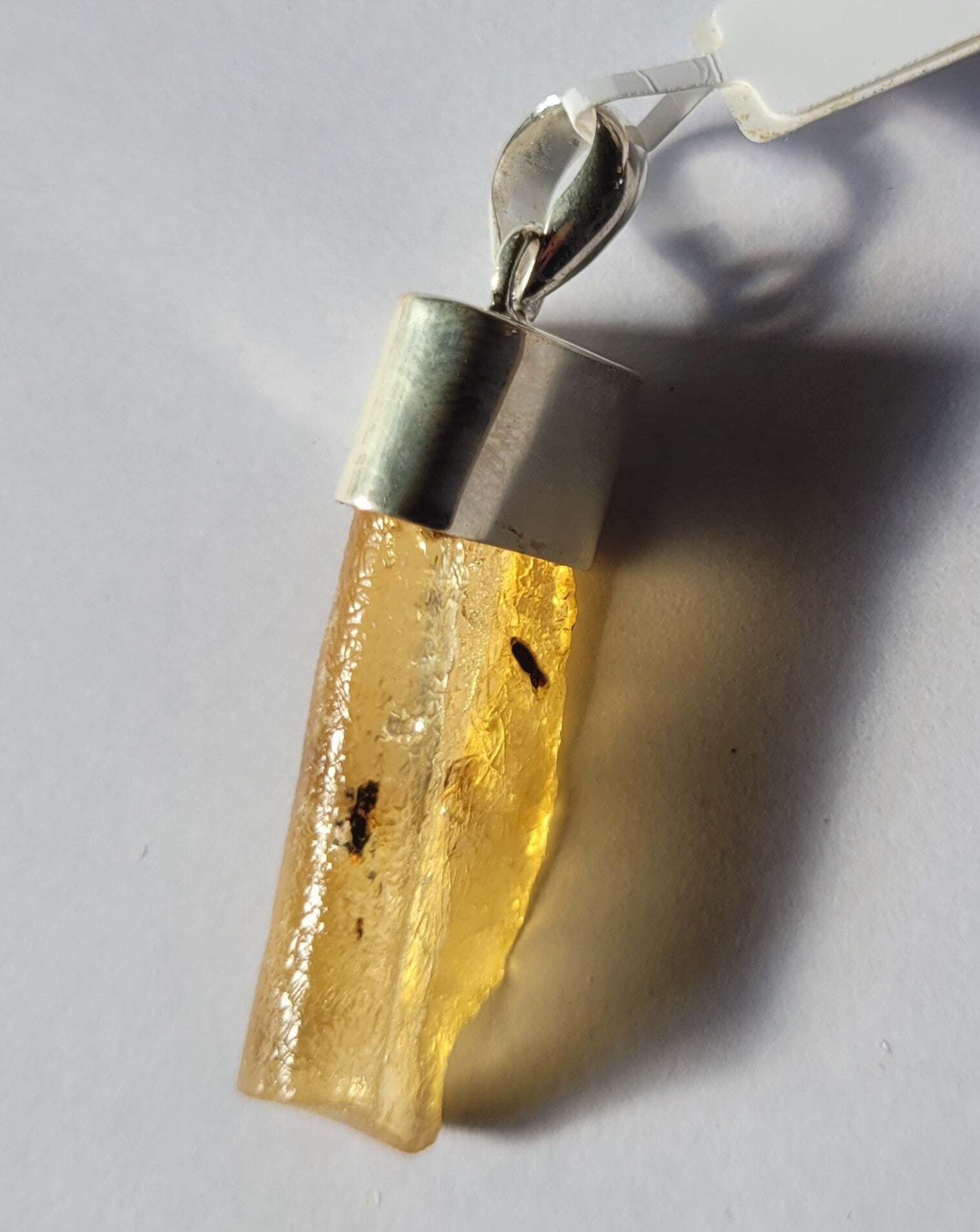 Redelijk grote ruwe Barnsteen in zilver cap en oogje.