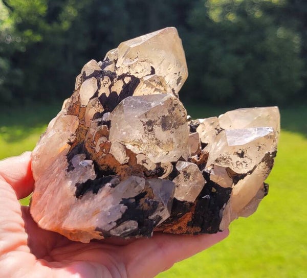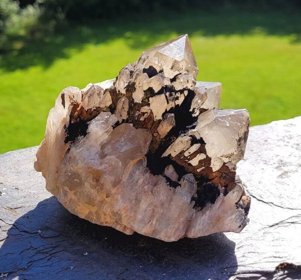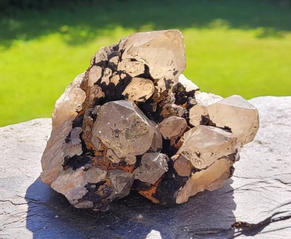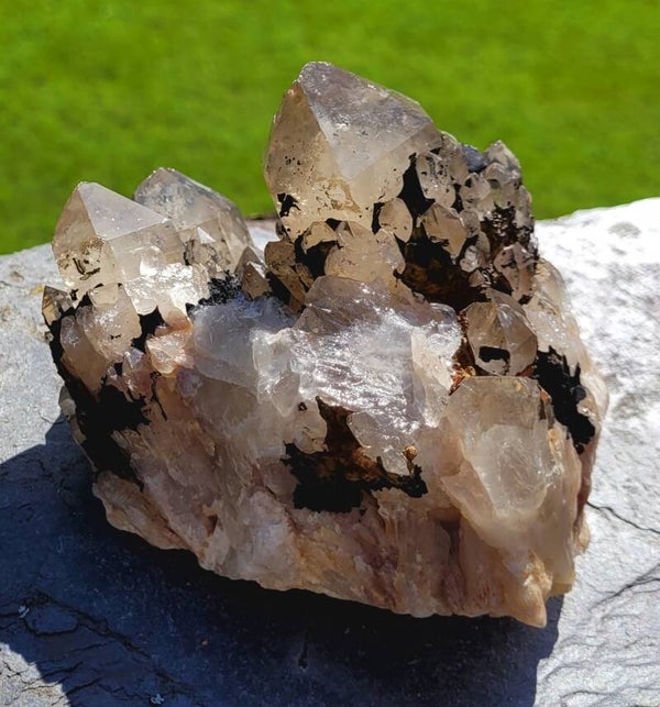 Groot cluster Citrien uit Congo met donker Hematiet er op.