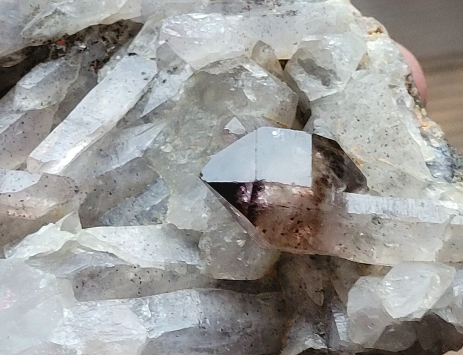 Cluster smokey Amethyst van Zimbabwe. Met scepterkristal.meestal Shangaankwarts of Siriuskwarts genoemd.