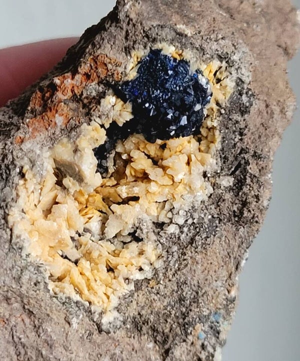 Geode Azuriet met Dolomiet uit Duitsland. Zie kaartje.