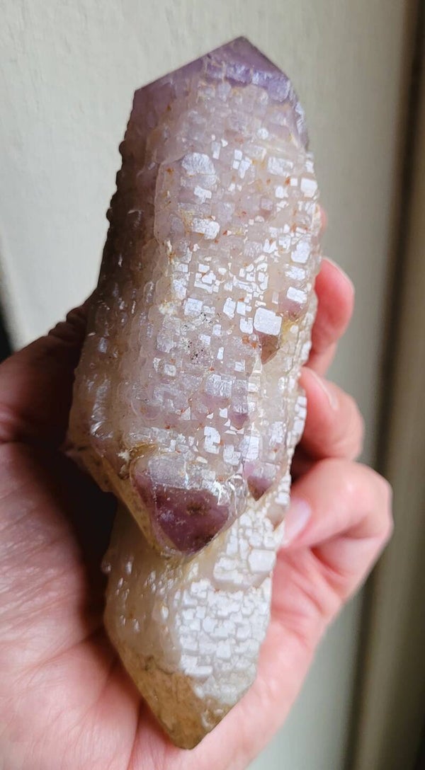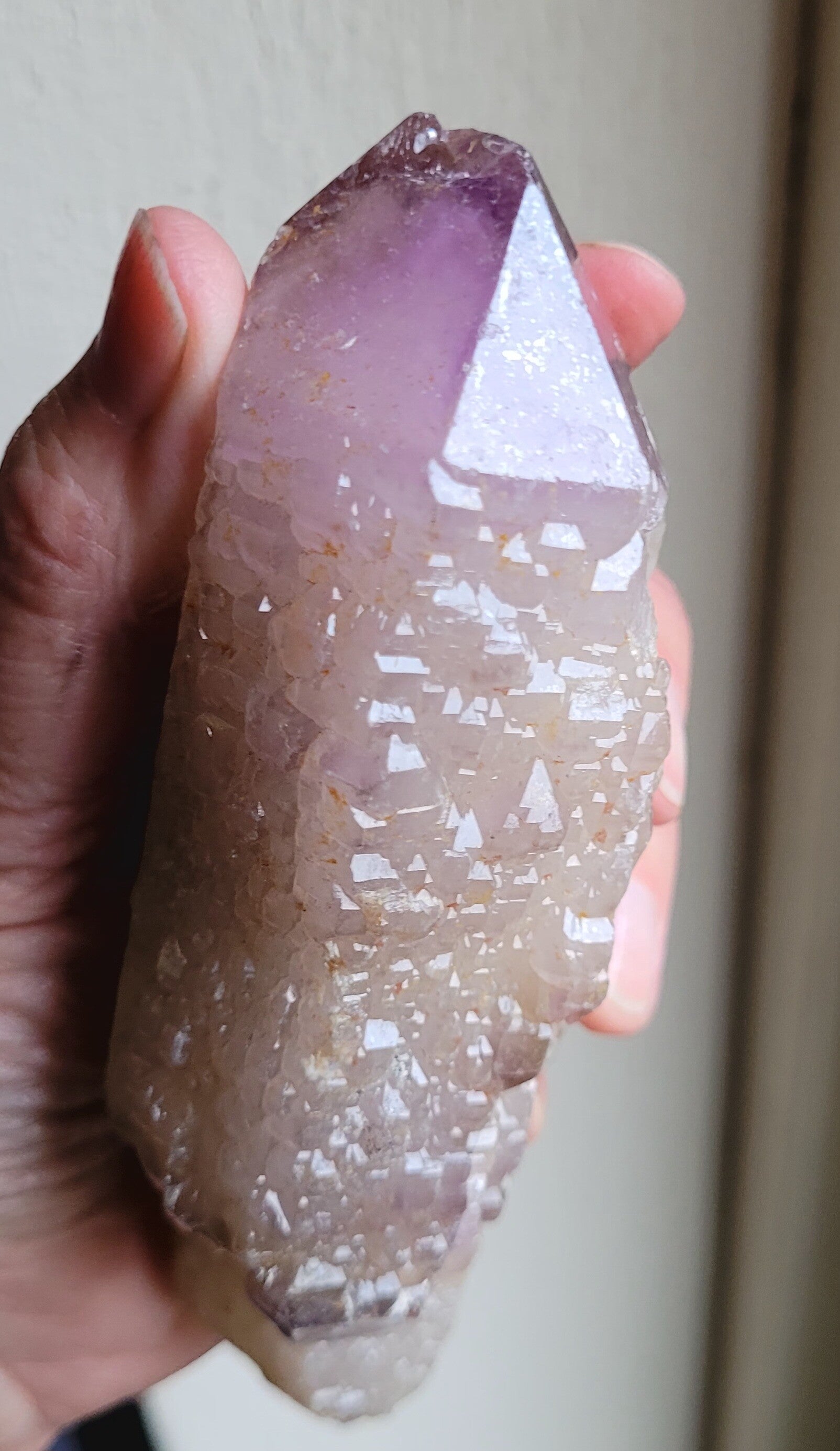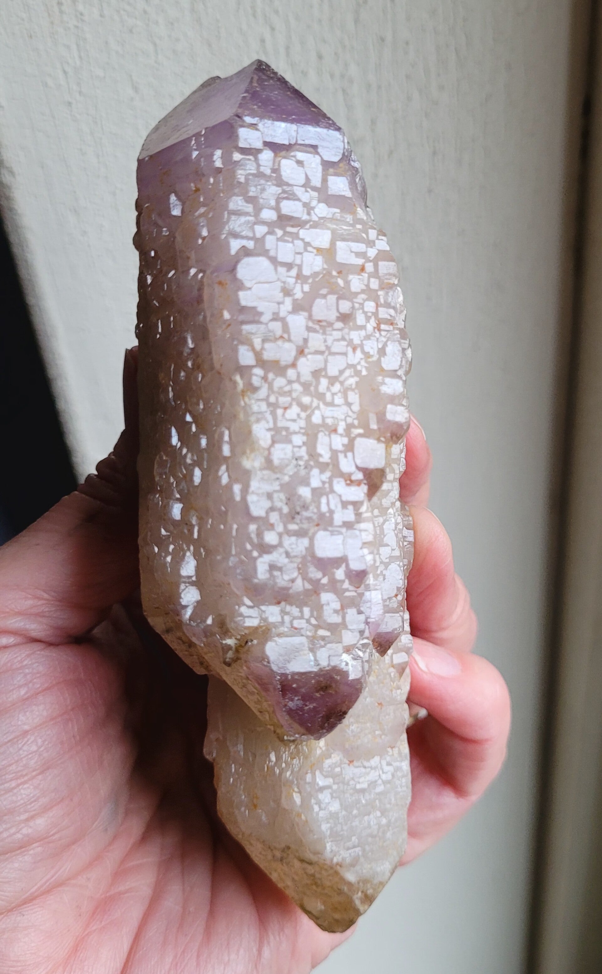 Besondere große scepter dippelender Shangaanquarz mit Elestial kristalle. Amethyst mit Rauchquarz und Limonit was es gelb macht. (golden healer) auch Siriusquarz genannt.