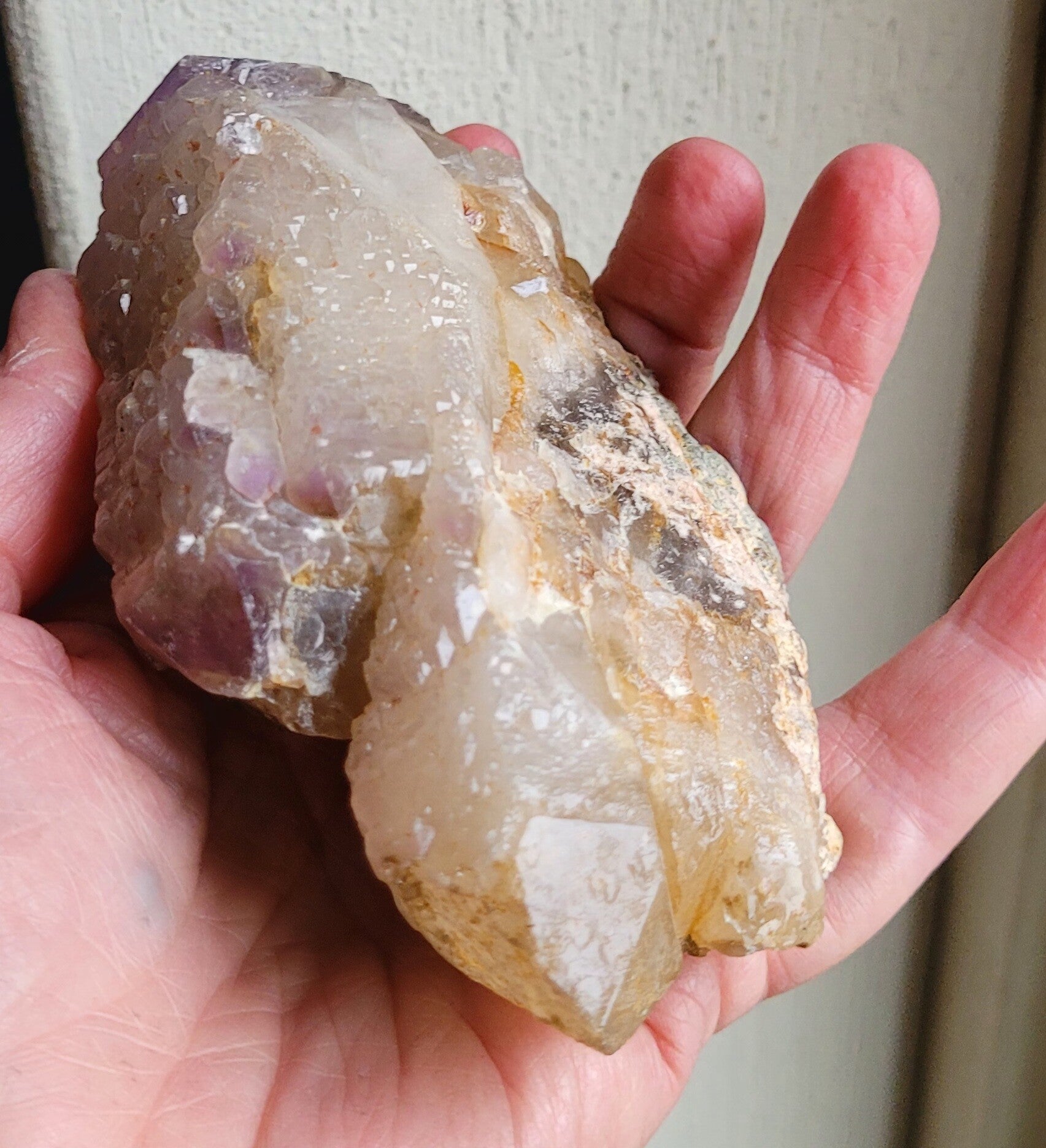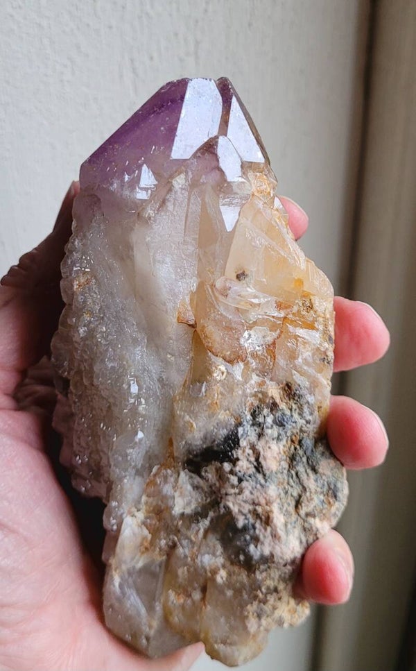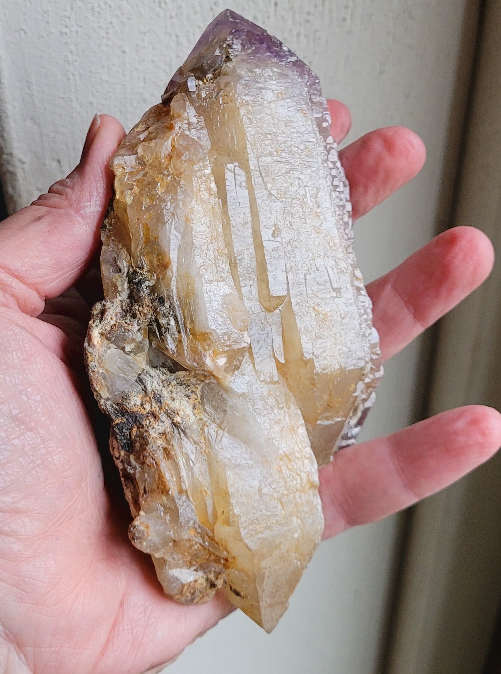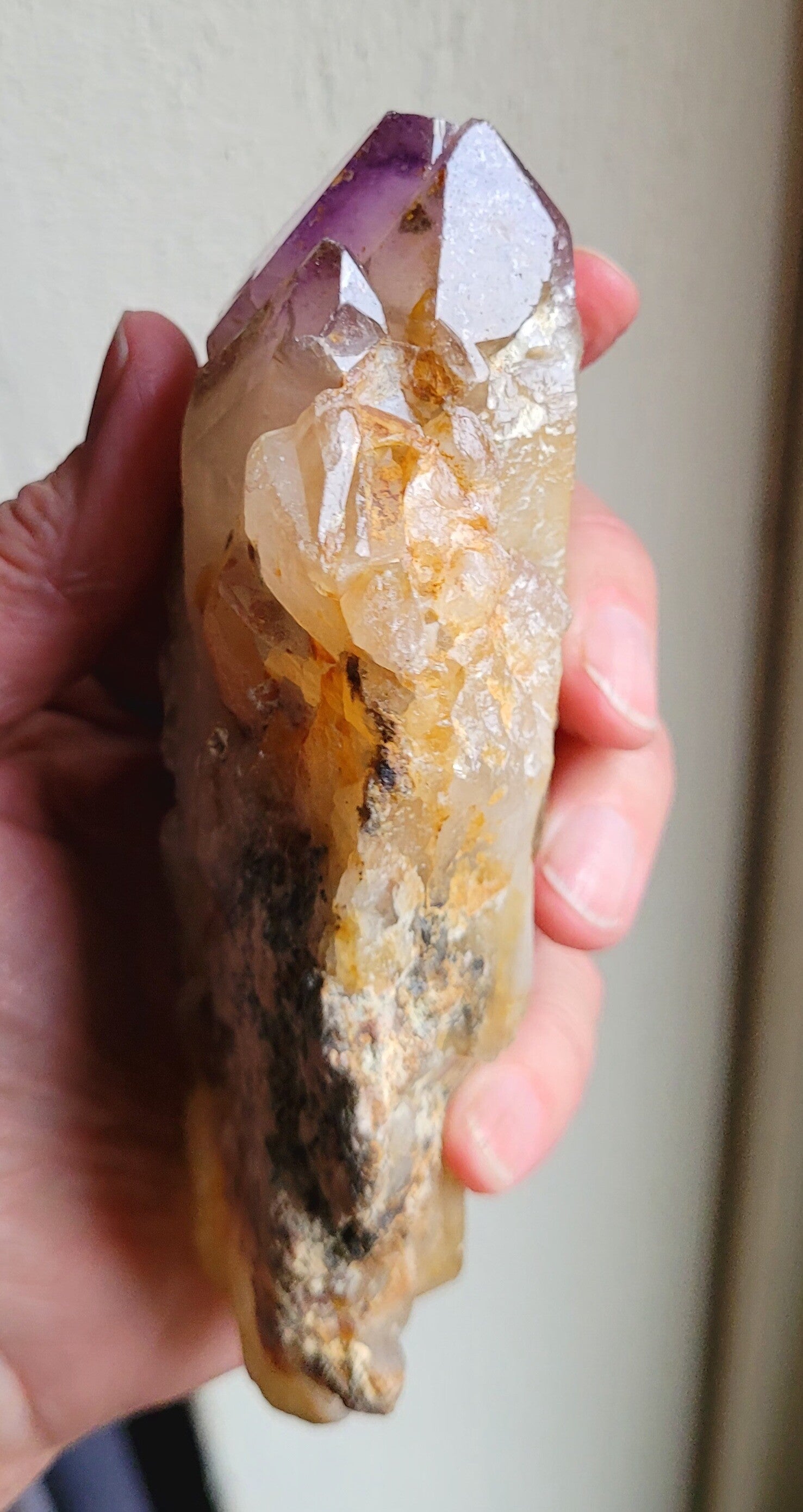 Aparte grote sceptwr en dubbeleinder Shangaankwarts mt veel elestiaal groei. Amethist met Rookkwarts en Limoniet wat zorgt voor de gele delen. Ook wel Siriuskwarts genoemd.