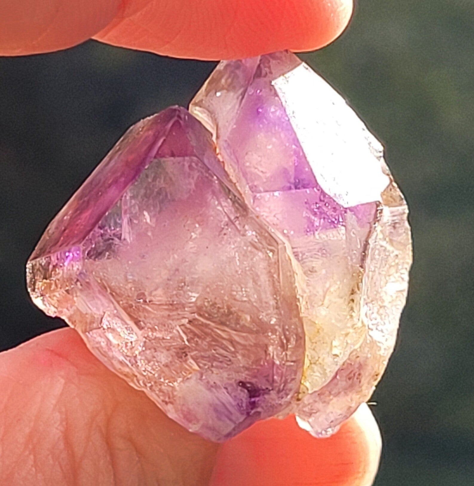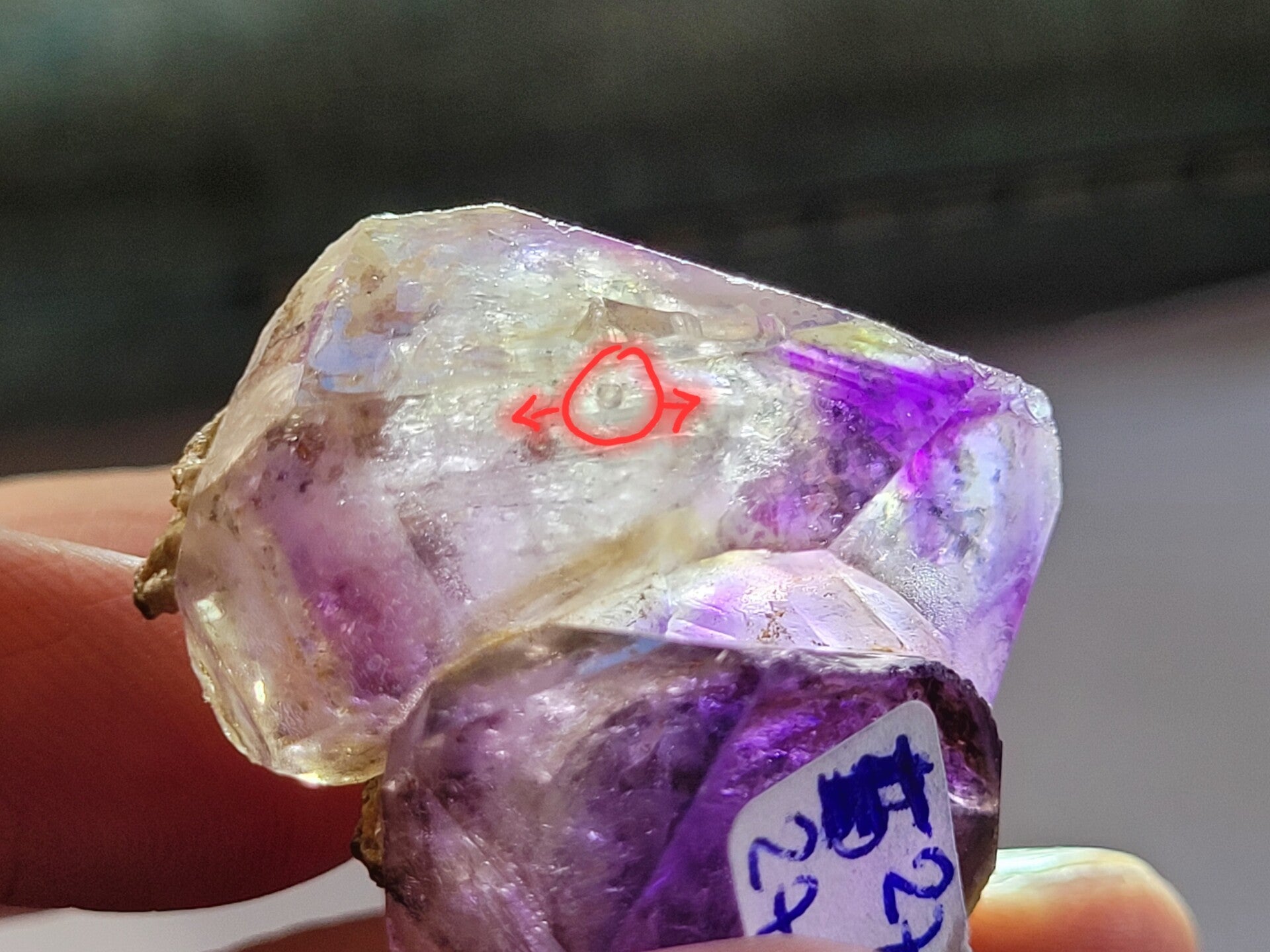 Mooi Smokey Amethyst kristal met Enhydro. Bewegende bubbel in Shangaankwarts, Siriuskwarts