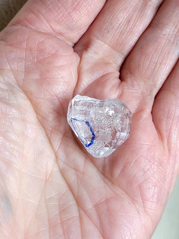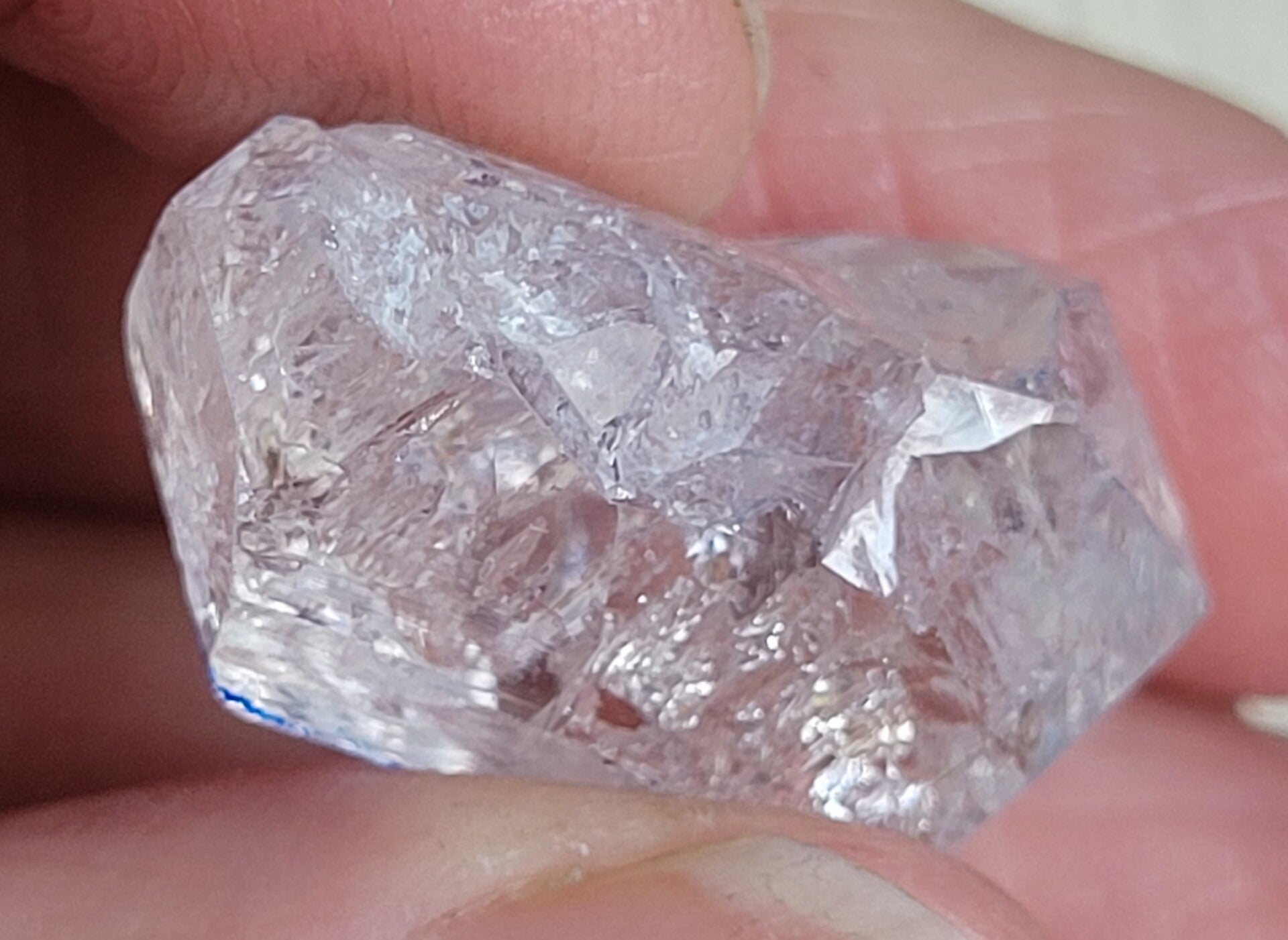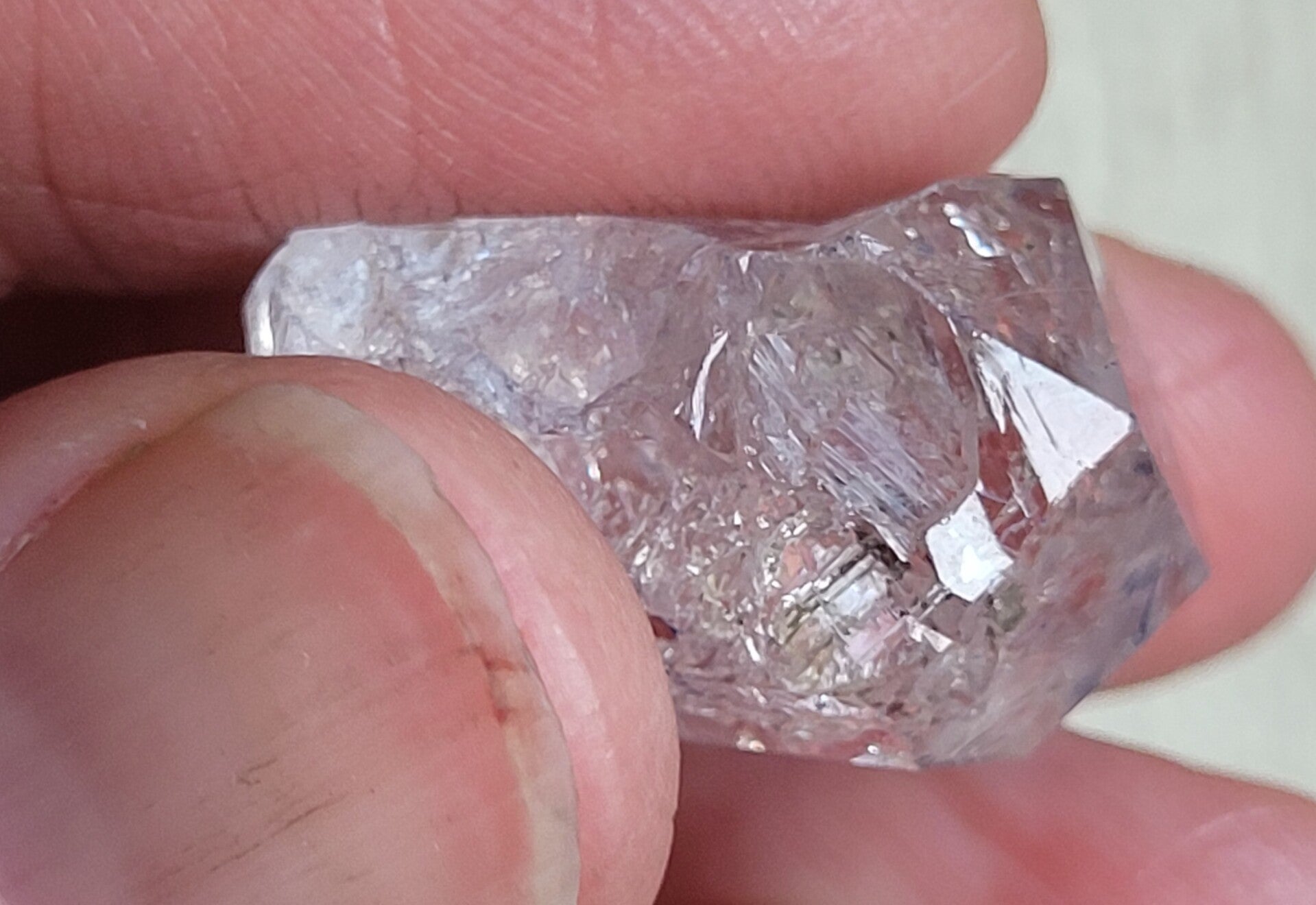 Mooi gaaf Diamond Quartz kristal dubbeleinder met Enhydro. Bewegende bubbel in oerwater. 'Herkimer' en Pakimer genoemd. Diamond quartz uit Pakistan.