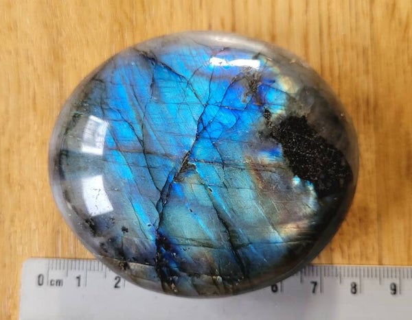 Grote handsteen Labradoriet met mooie flash.