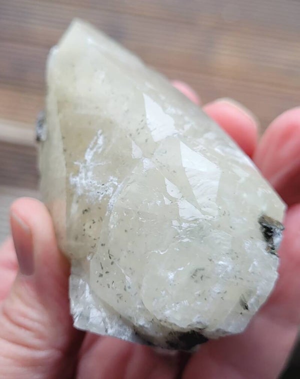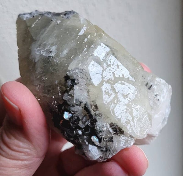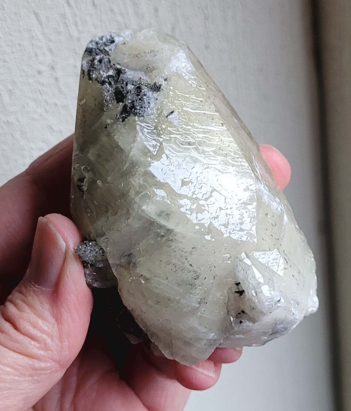 GroßesCalcit Kristall mit Marcasit/ Chalcopyrit, spitz ist beschädigt.