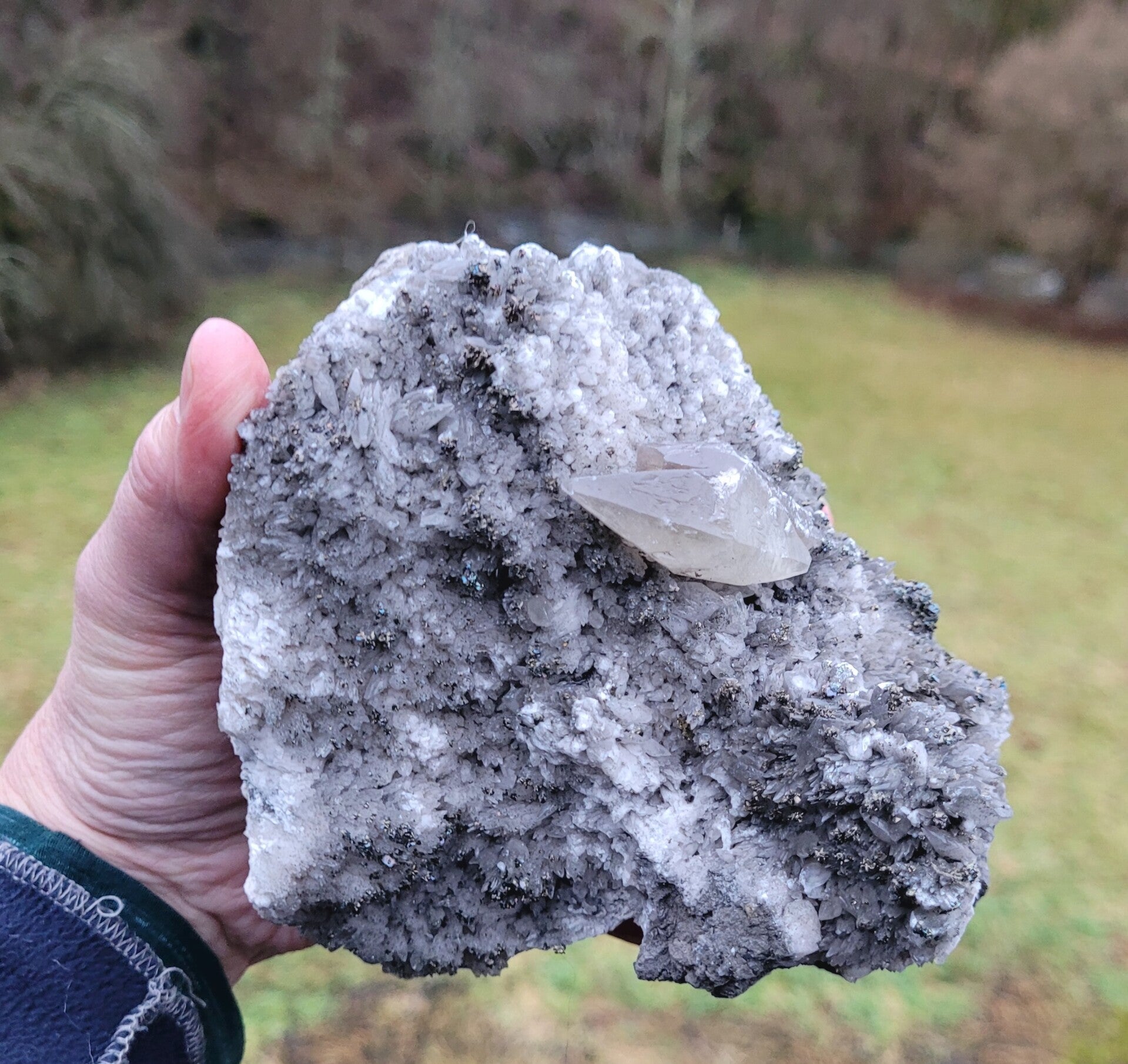 Large cluster Calcite on Matrix, with Marcassite / Chalcopyrite crystals and 1 double terminated Calcite crystal.