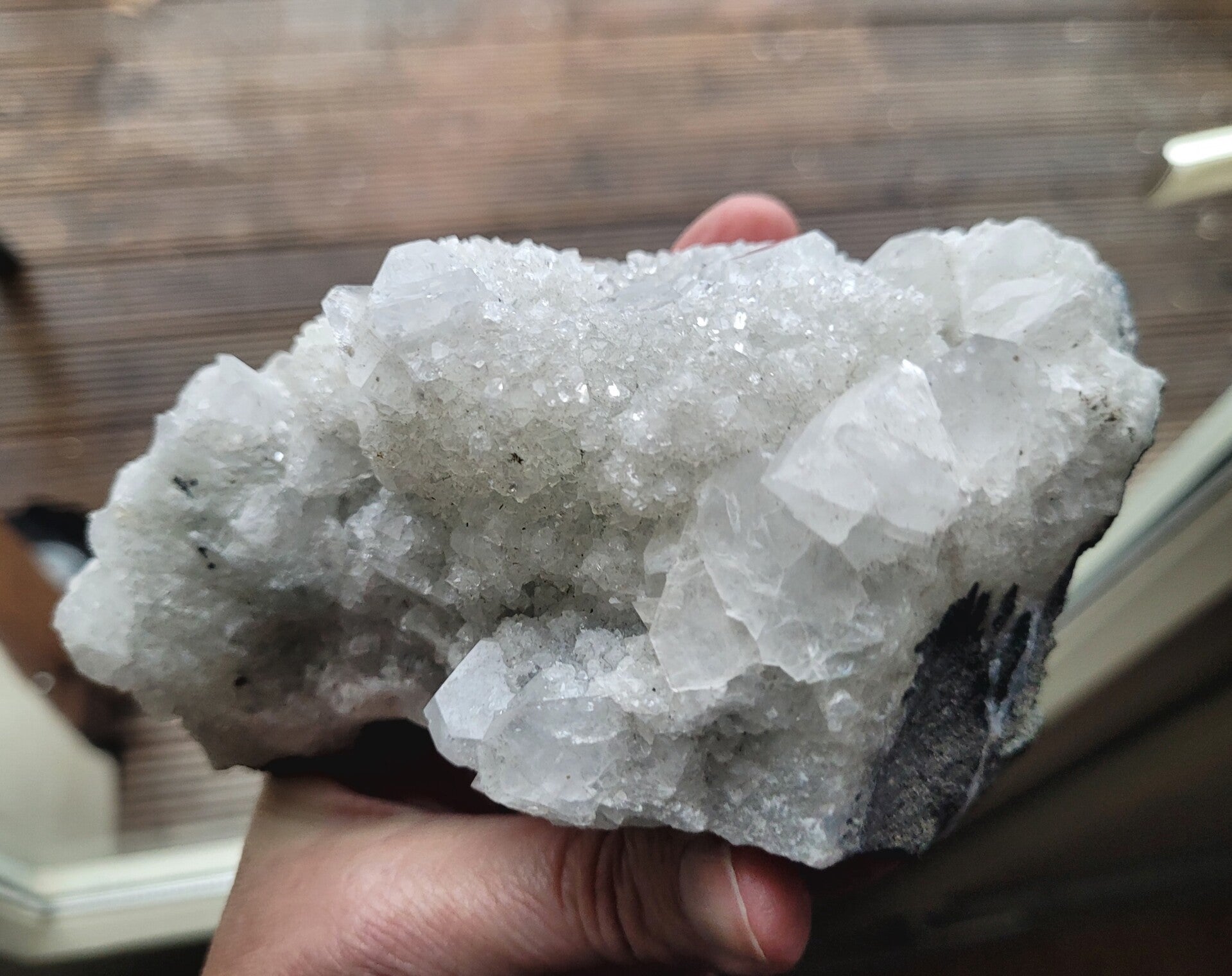 Cluster Apofyliet op matrix, grote en kleine kristallen.