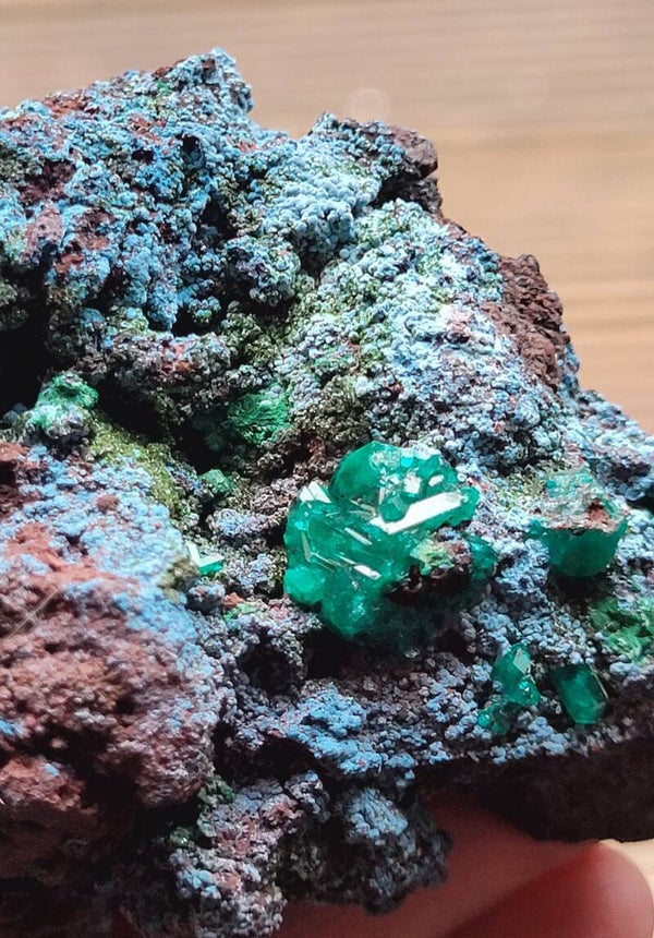 Rough Dioptase crystals on Plancheïte and Matrix.