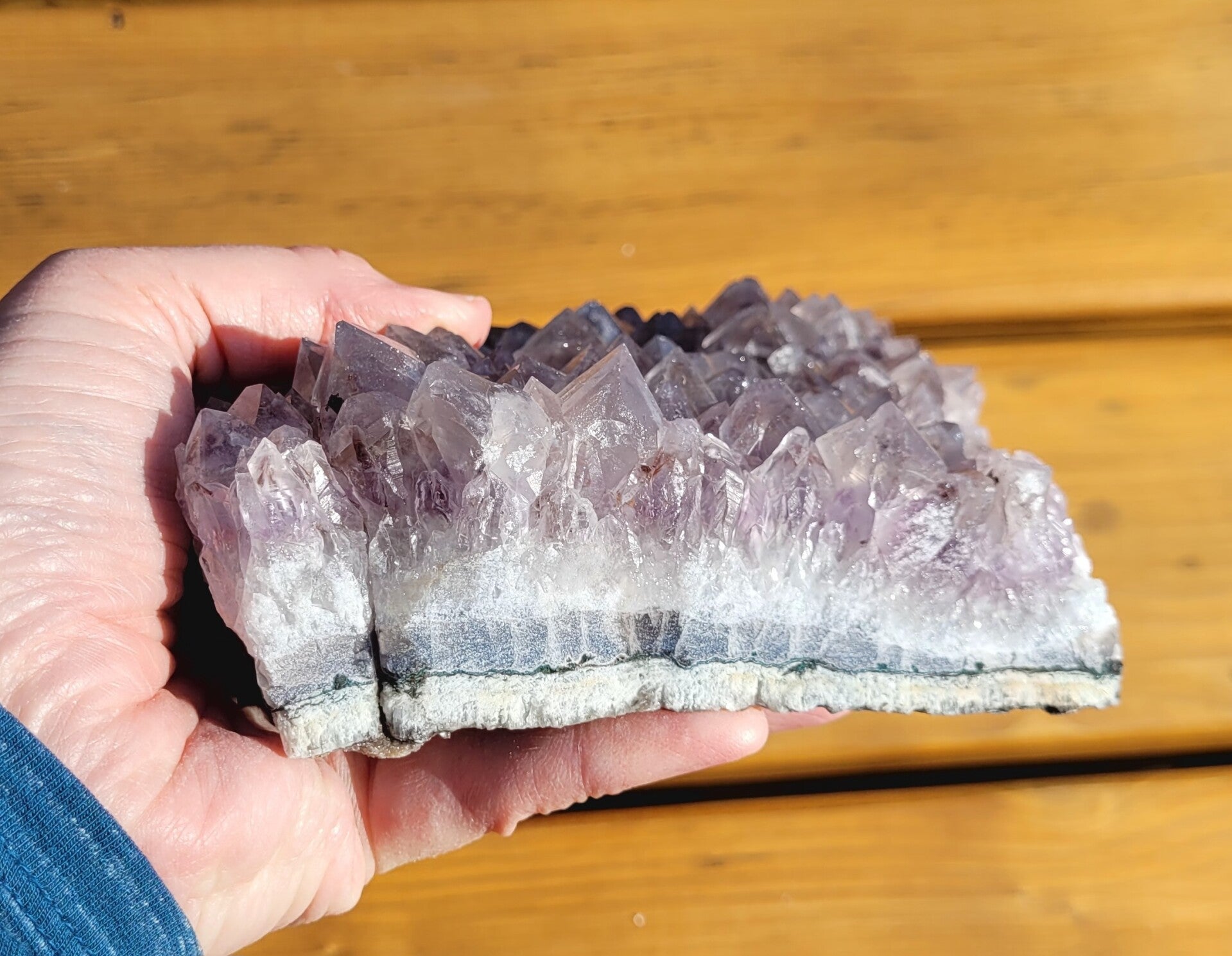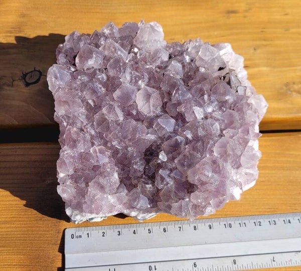 Zelfstaande brok ruwe Amethist, is gelijmd. Als ie staat zie je dat niet. Vandaar prijs. Zie foto's.