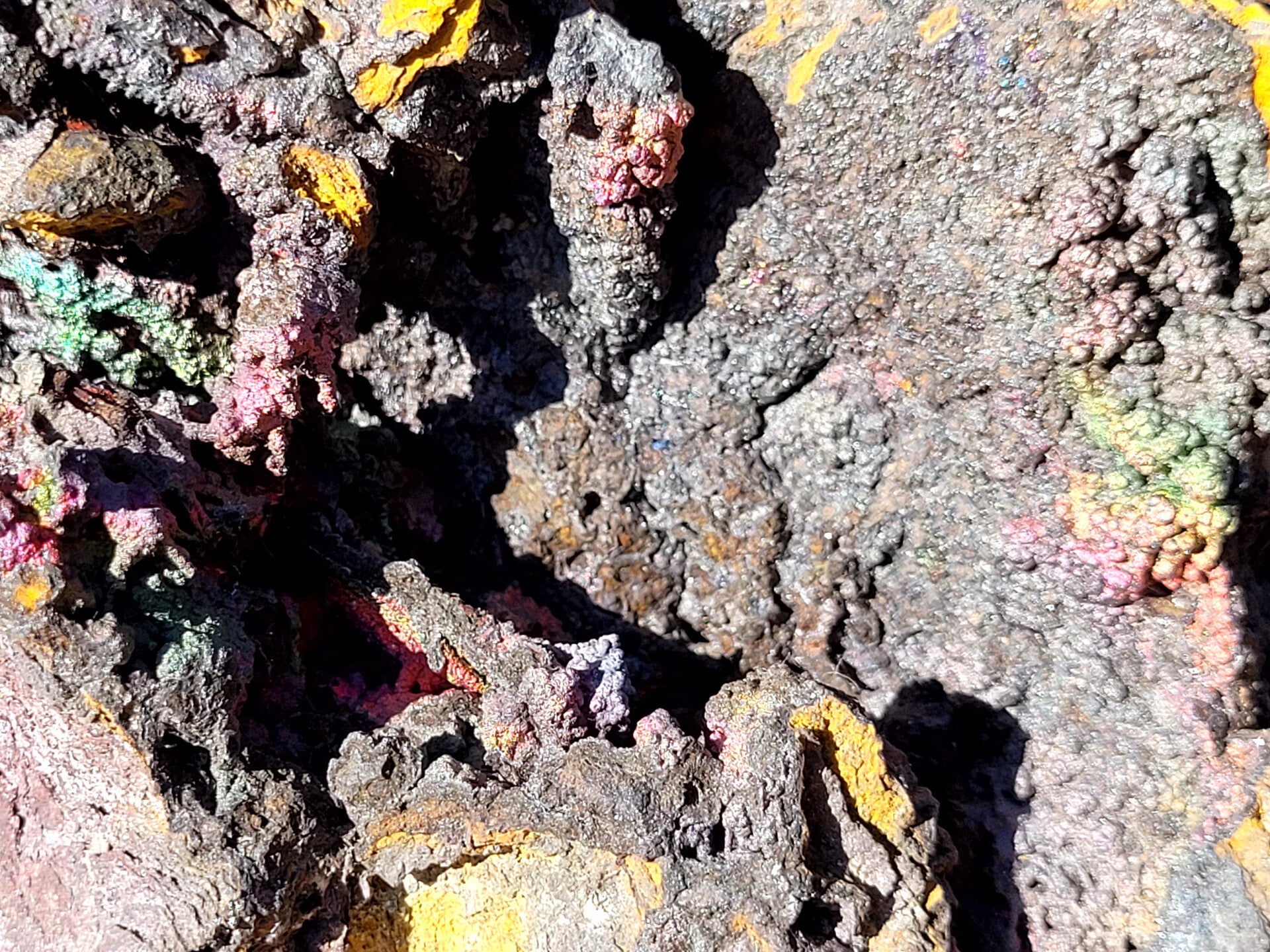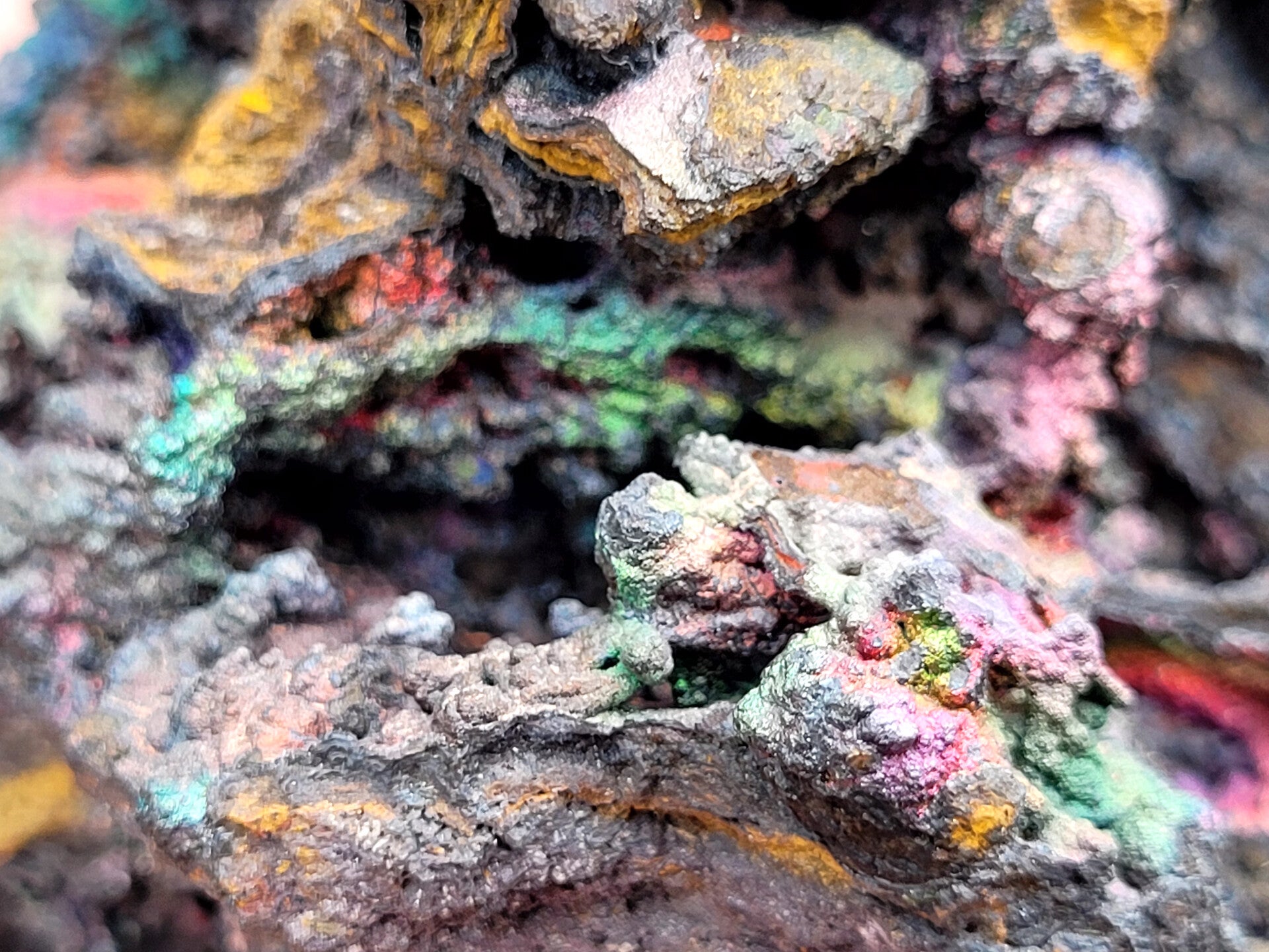 Ruw stuk Iriserend Goethiet met Limoniet. Hier en daar Felle kleurtjes op de bolletjes.