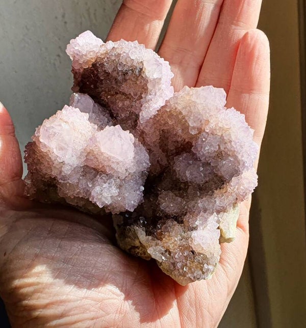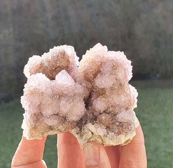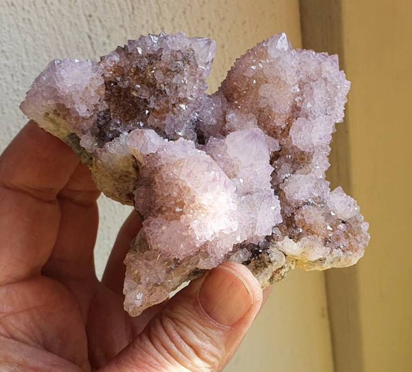 Heel mooi cluster Cactuskwarts Spiritkwarts met wat hematiet, wat het hier en daar oranje maakt.