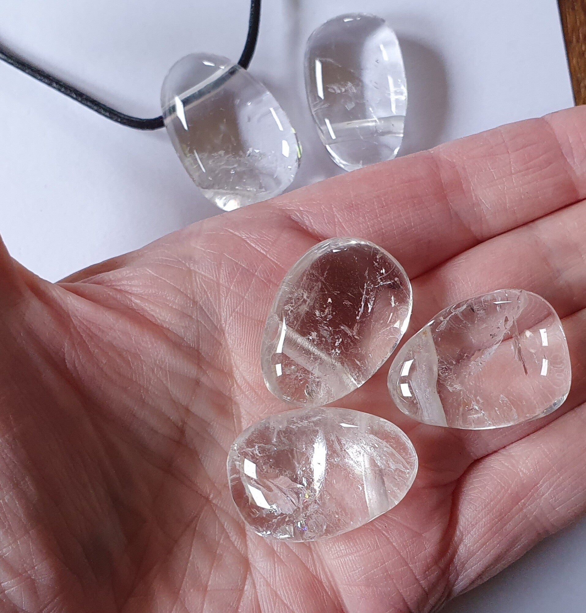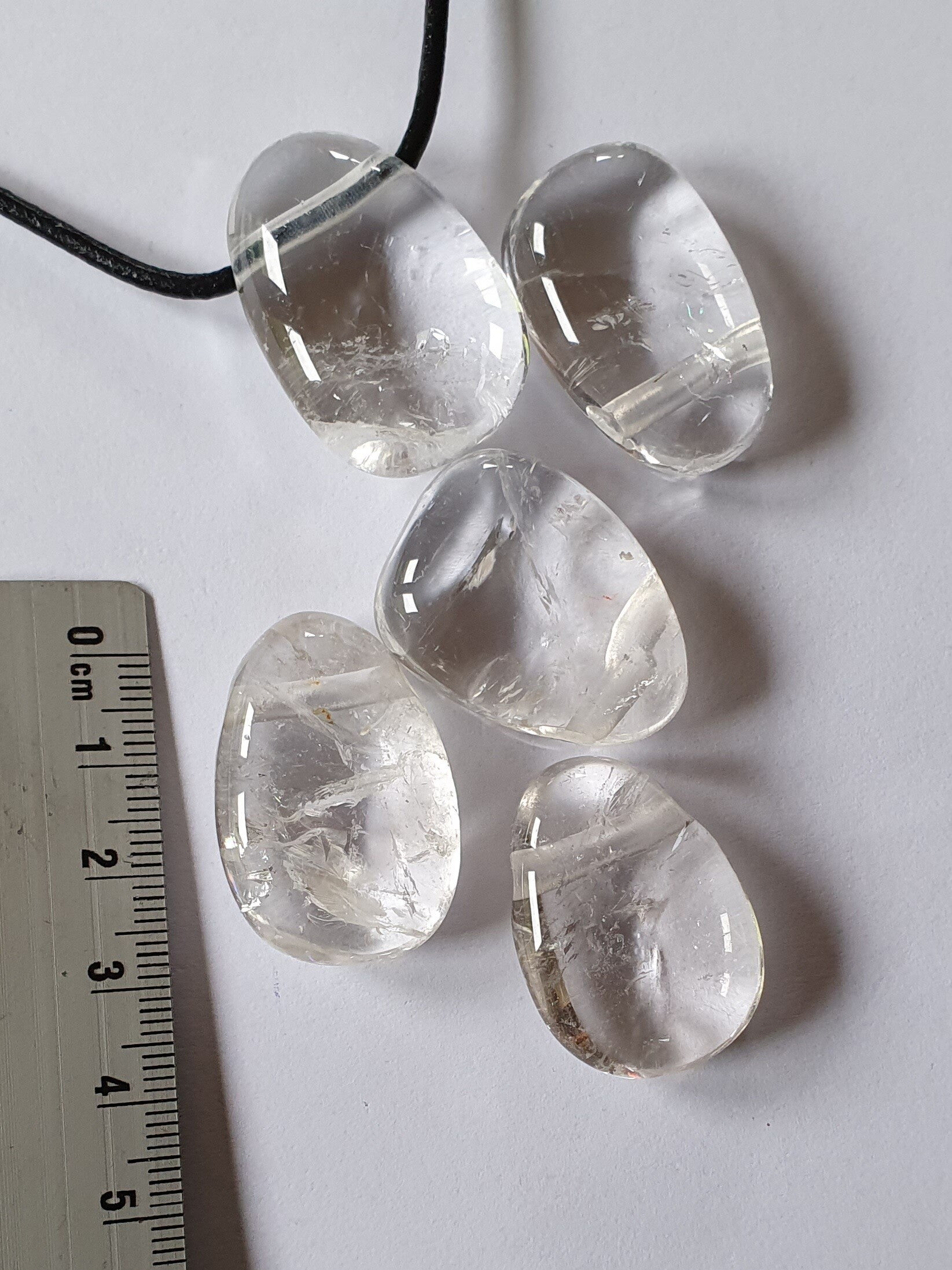 Doorboorde hanger in druppelvorm helder Bergkristal.