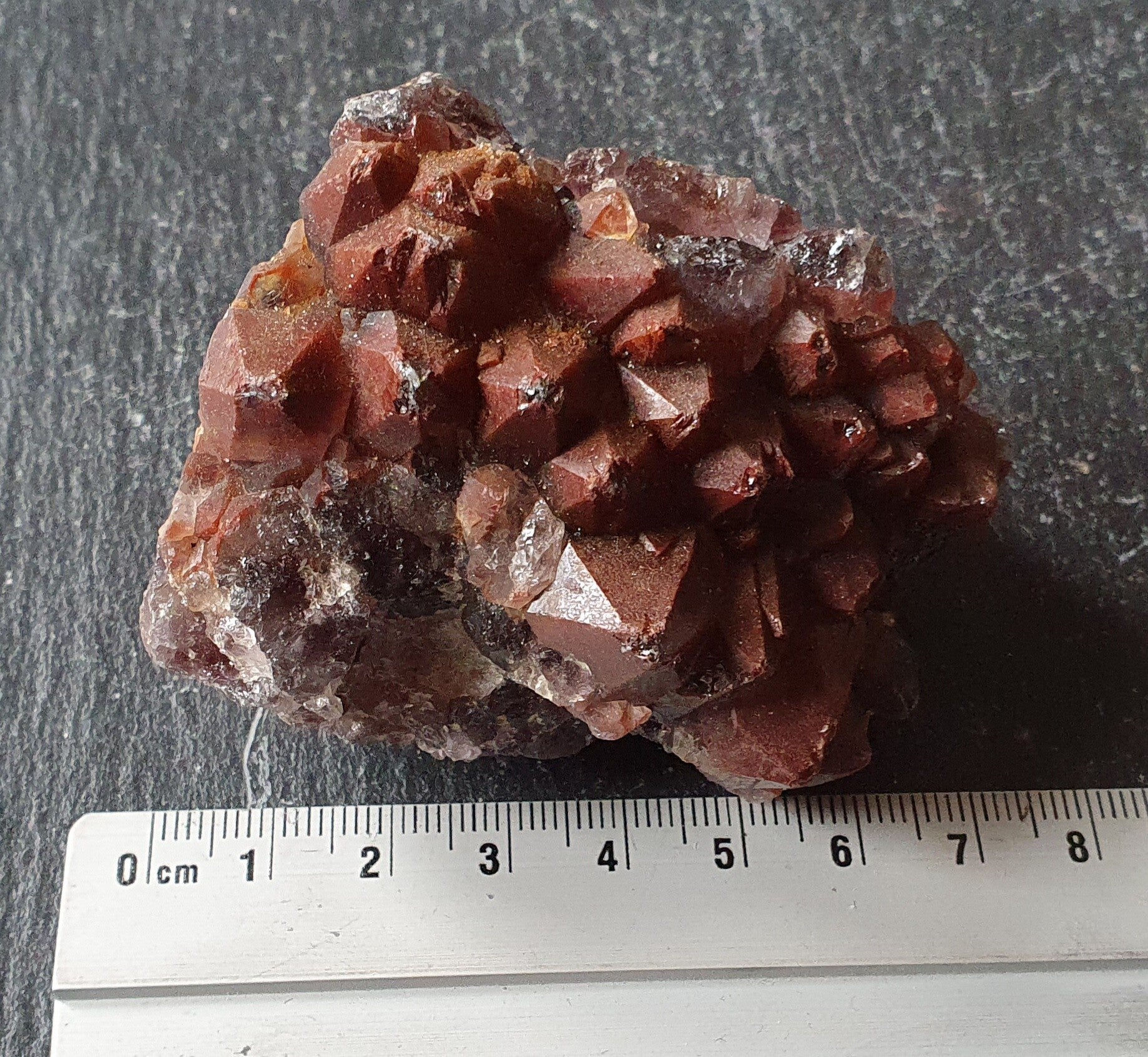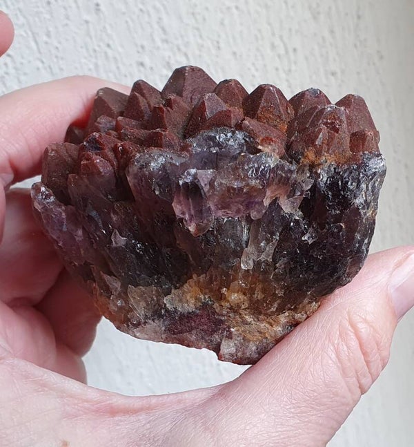 Rookkwarts,Amethist met insluitsels. Rode puntjes.