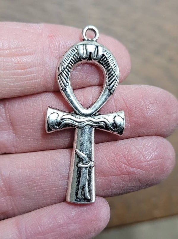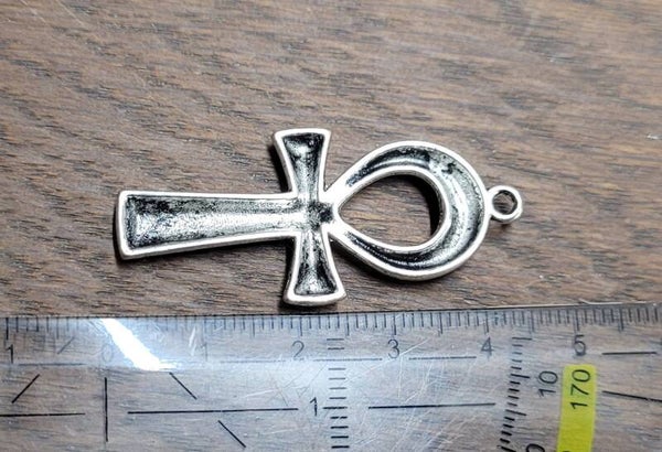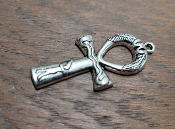 Mooie hanger Ankh symbool, zilverkleurig metaal.