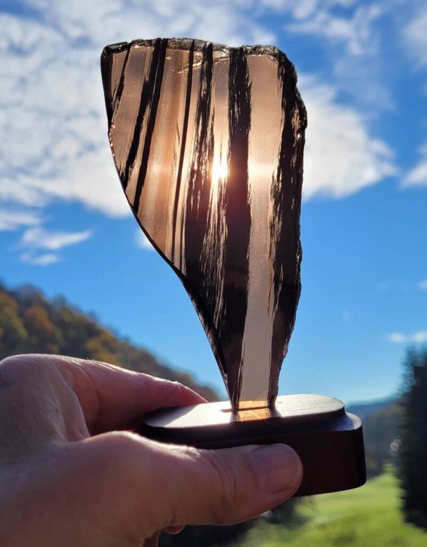 Mooie geslepen plaat Lamel Obsidiaan met ruwe zijkanten.