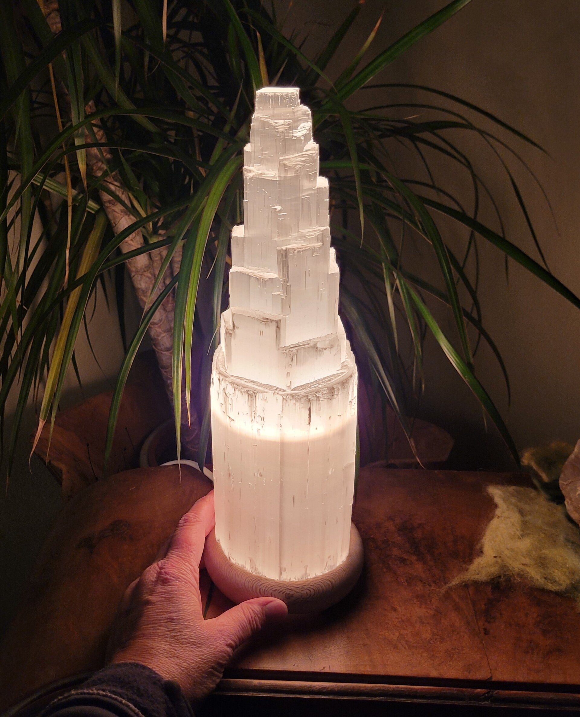 Grote Lamp Seleniet Satijnspaat 20 of 30 cm Selenite SatinSpar