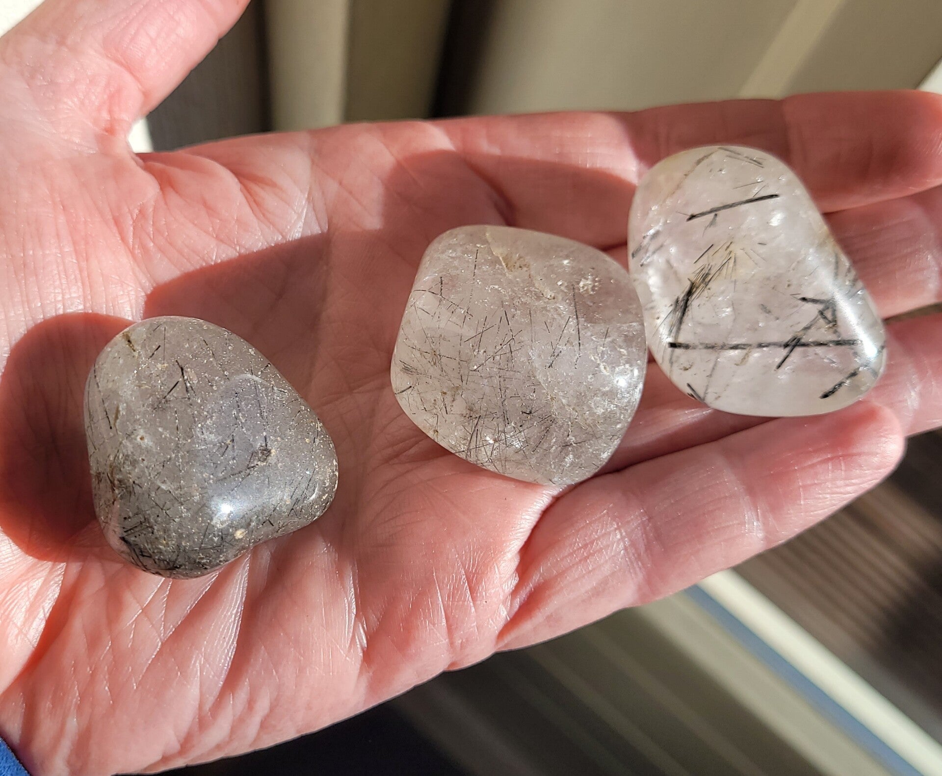 Grote Toermalijnkwarts trommelsteen Turmalinquarz, Tourmalinequartz