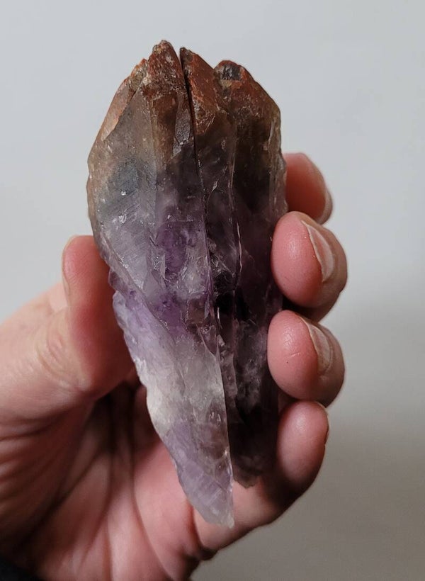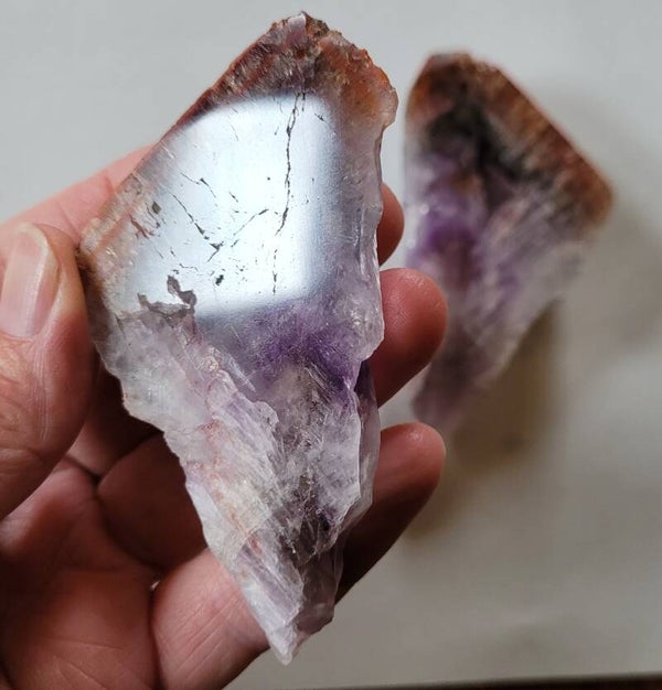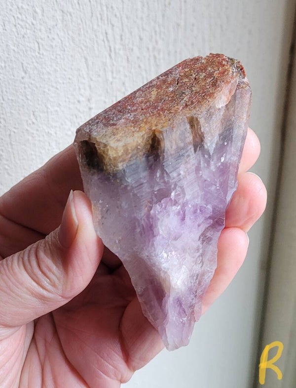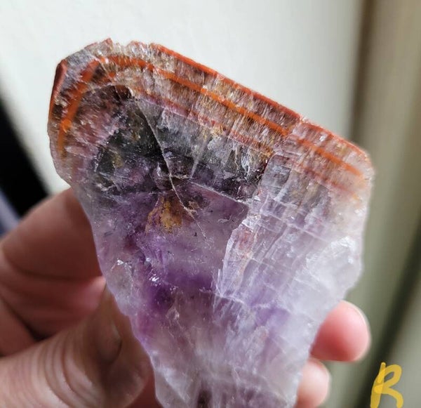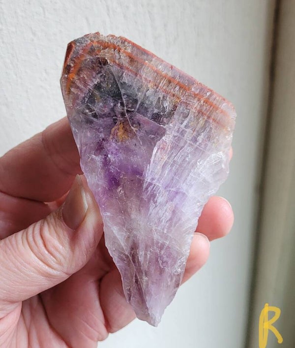 Mooie ruwe punt super 7, Cacoxenit die in het midden doorgezaagd is en de binnenkant is gepolijst, buitenkant is ruw.