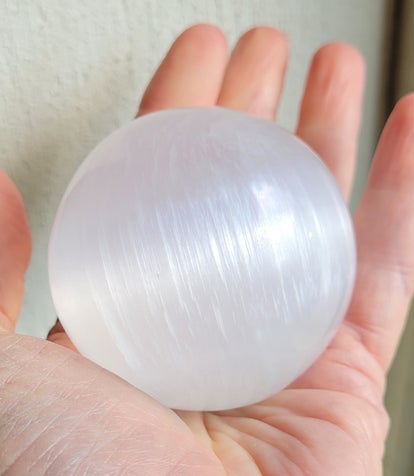 Bol witte Seleniet, Satijnspaat 8 cm Selenit kugel, Selenite sphere