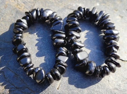 Mooie armand, glad gepolijstte trommelstenen Shungiet. Vrij grote stenen, geen split, erg mooi.